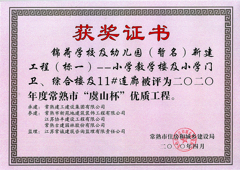 2020年度常熟市"虞山杯"優(yōu)質(zhì)工程
