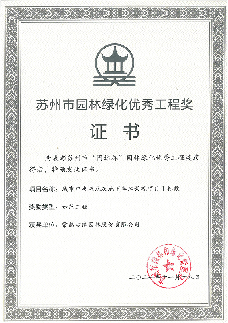 2021年度蘇州市"園林杯"園林綠化優(yōu)良工程