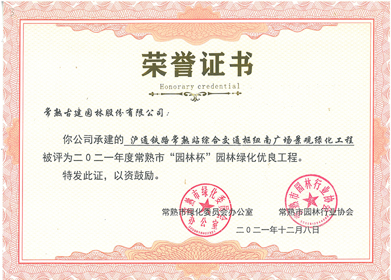 2021年度常熟市"園林杯"園林綠化優(yōu)良工程