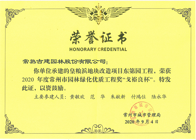 2020年度常州市園林綠化優(yōu)質(zhì)工程獎“戈裕良杯”