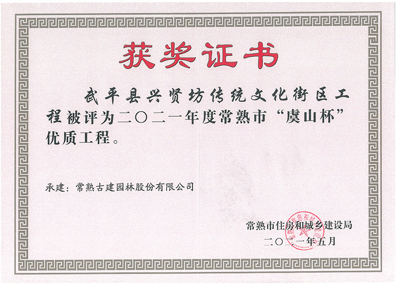 2021年度常熟市"虞山杯"優(yōu)質(zhì)工程