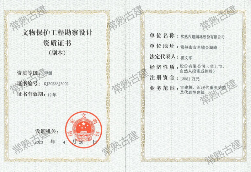 文物保護工程勘察設(shè)計甲級