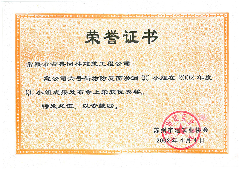 《解決仿古建筑檐口滲水質(zhì)量通病》榮獲QC成果三等獎