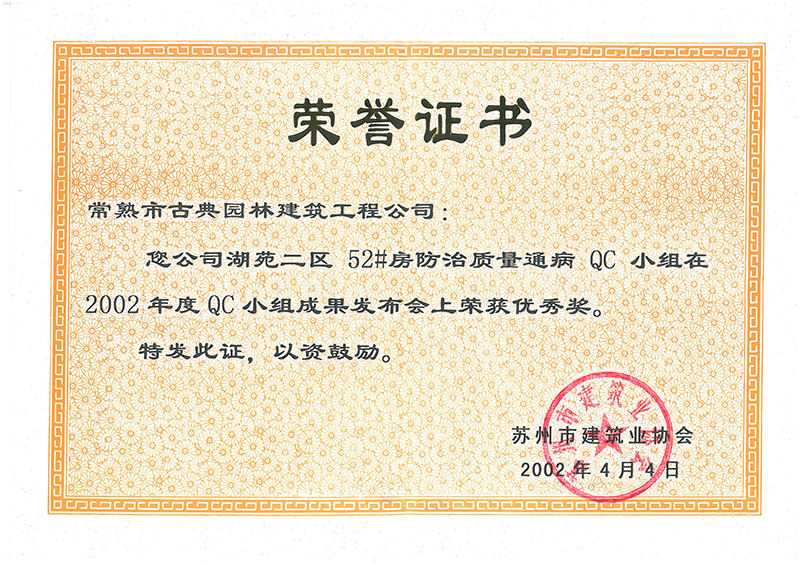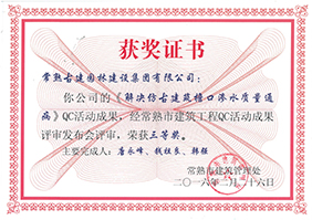 湖苑二區(qū)52#房防治質(zhì)量通病榮獲QC成果優(yōu)秀獎