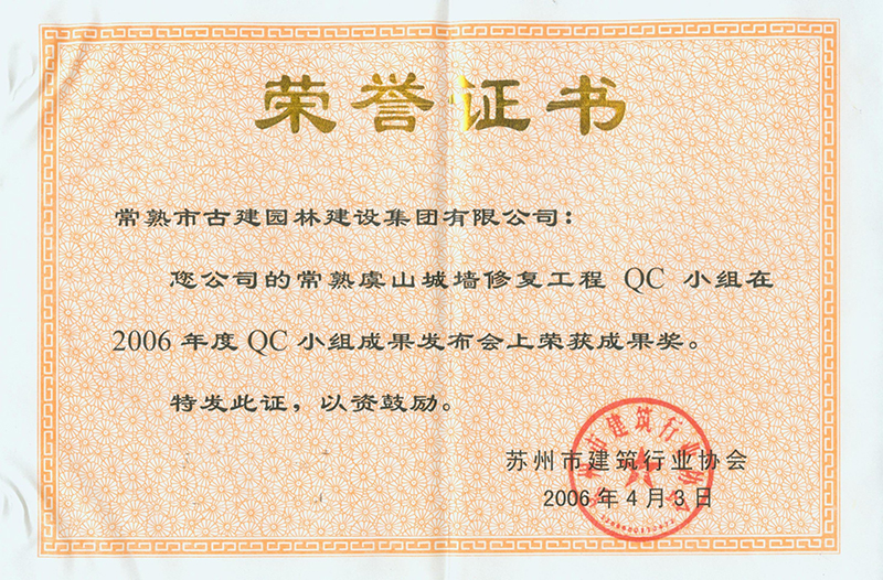 常熟虞山城墻修復(fù)工程榮獲QC成果獎