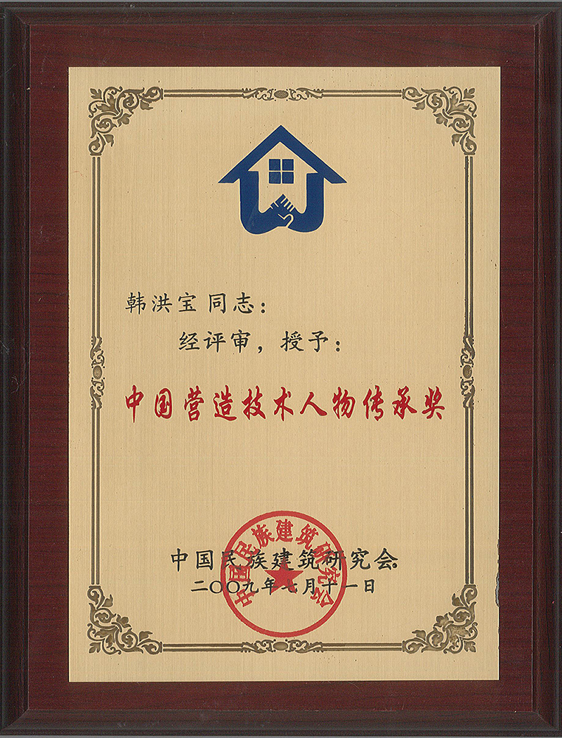 中國(guó)營(yíng)造技術(shù)人物傳承獎(jiǎng)