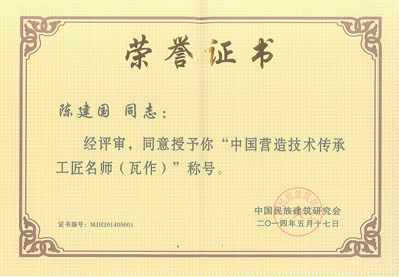 中國(guó)民族優(yōu)秀建筑營(yíng)造技藝大師 (瓦作)